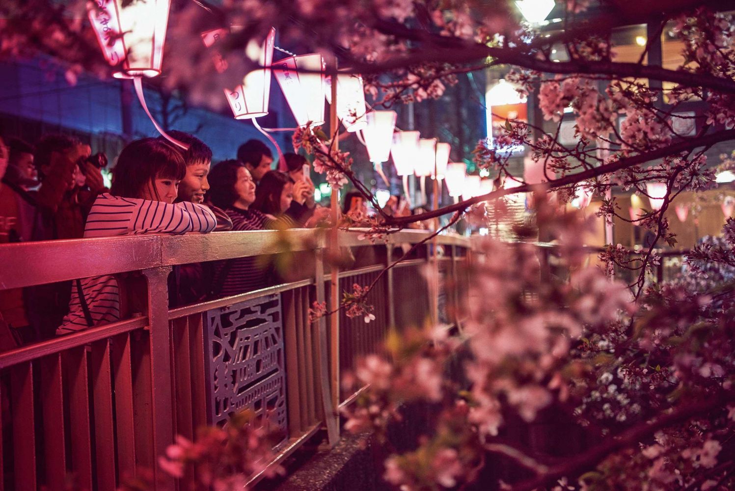 זה שהשמש כבר שקעה לא אומר שההנאמי נגמר: סאקורה בשעת לילה היא אמנות בפני עצמה, והמון דחוס אך ממושמע נוהר לאורך גדות התעלות וגשרי ההליכה שעל נהר מגורו ברובע שינגאווה. בשני הצדדים, הפריחה מוארת היטב מלמטה באמצעות פנסים בצבע ורוד עז, שמראים שתמיד אפשר למצוא גוונים חדשים של ורוד.
